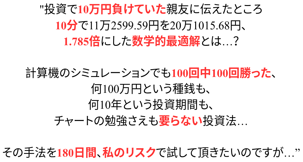 リスクはむしろ、3時間で33921.608倍のリターンを出すチャンスを